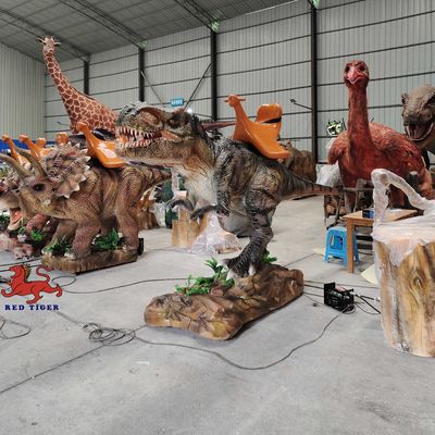 Dinosaurio animatrónico realista T-Rex Ride Dino RideCniños en parque de atracciones y parque temático